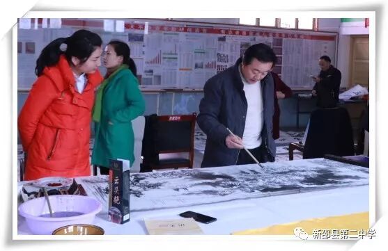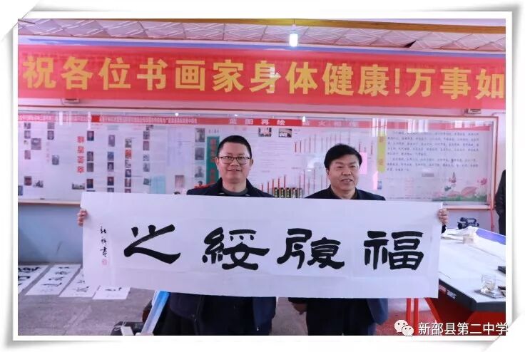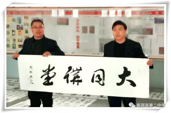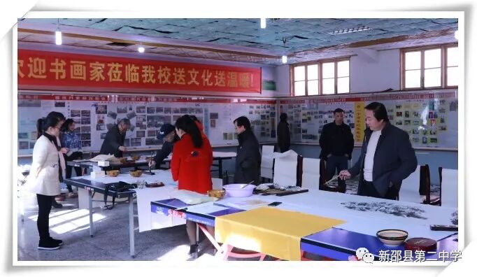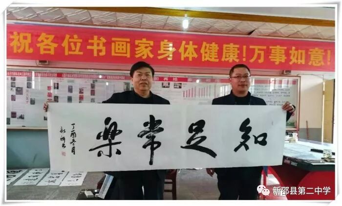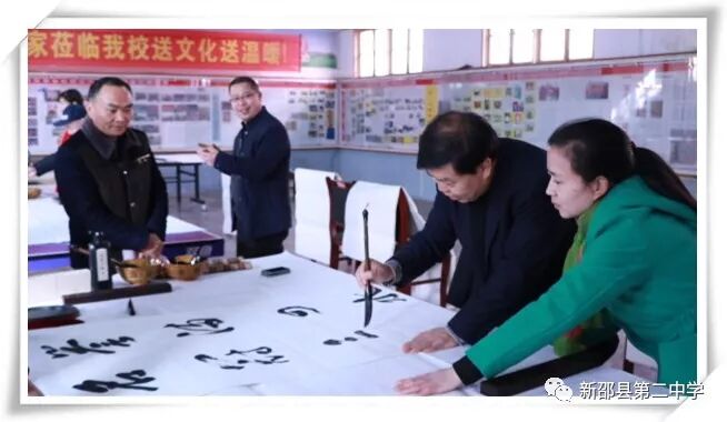 2017年12月25日,应母校盛情邀请,新邵二中高四十二班校友刘新科携全国众多书画大师来我校送文化、送温暖。参加这次活动的书画家有:刘新科(中国铁路文联副主席,中国铁路书协主席,中国书协会员,中国作协会员,中国作协九届全委),王学甫(中国铁路书协副主席,中国铁道印社社长,中国书协会员,京津城际铁路公司副总经理),王江潮(中国铁路美协秘书长,河北省美协理事,著名山水画家),周劲松(北京师大书法博士,文联出版社美术主编,著名书法家)。