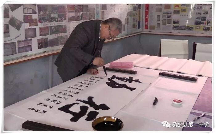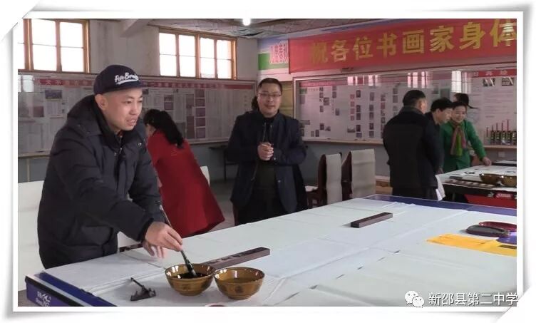 在校史展览馆,领导学者们浏览了百年名校的艰苦办学历程图片文字材料,一起泼墨挥毫,为慕名而来的师生留下了众多的墨宝。